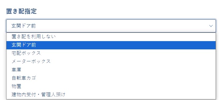 受取方法として、お客様にご指定いただいた場所(玄関前、宅配ボックス、車庫、物置など)に荷物を置かせていただく、置き配がご利用いただけます。