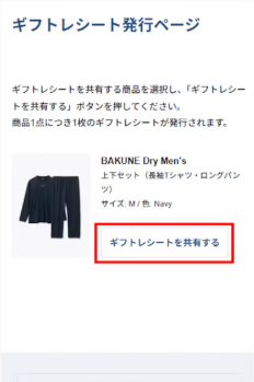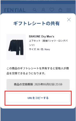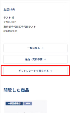 贈り手の方からギフトレシート(URL)を共有することで、相手の方が返品・交換手続きをすることができます。
